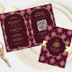 Burgundy Tufted Pattern QR Code Muslim Wedding Invitation