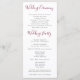 Elegant burgundy watercolor flowers wedding program. This design features beautiful watercolor roses in burgundy and blush pink. A modern script font is paired with a serif font. Easily personalize for your special day.
