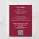 Yes, you can print on the back of your invitation for free! Most designs already have a corresponding design on the back that can be personalized using the Design Tool and going to Layers. This is a great way to communicate more information or further personalize your Burgundy Wedding Qr Code Rsvp Invitation. The option is really up to you.