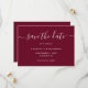 Elegant burgundy wedding save the date cards with a modern script font. Matching items available.
