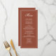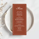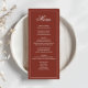 Complete your wedding table setting with this wedding menu card, featuring simple elegant calligraphy in a classic formal style. Designed in a stylish rust burgundy color, this reception dinner template adds warmth and sophistication to your rehearsal party table. The traditional typography design highlights the bride and groom’s monogram with classy ampersand initials, creating a personalized touch. With a clean, basic, minimal aesthetic, this menu is perfect for an elegant celebration