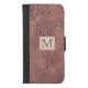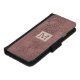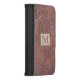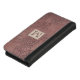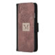 Antique effect burgundy background decorated with purple grapevines on classic monogrammed phone wallet.