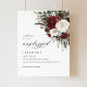 Matching items available including wedding invitations, RSVP cards, details cards, envelopes, signage, and full wedding stationery suite in the same burgundy winter floral collection.