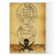 Howard Pyle illustration of pirate William Kidd burying treasure, Ancient parchment map for finding treasure with secret symbols and skull with crossed swords . Digital Graphic Design by Bulgan Lumini .