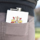 Well made flask, a little better than I had expected. Flask came in clear plastic box which gave it a nice presentation when I took it out of the zazzle packaging. Image is not printed on flask but on sticker. Don't know how this will hold up I haven't used it yet. This would make a Great gift! I plan to purchase more for friends! Cheers. I thought a little brighter than computer. Very crisp, writing wasn't