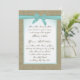 Burlap and Aqua Bow Rustic Wedding Invitation