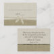 The rustic look of Burlap accented with a vintage white bow. Personalize with your own special message on back of seating card, or remove message and just add names and date.