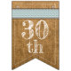 Add a bit of rustic charm to your birthday party or event with this Burlap and Chevron Happy Birthday Bunting Banner. All of the flags have a faux burlap background topped with a turquoise blue and white chevron stripe with brown half-moon ruffle edges. The 2 end flags have a weathered barn wood image underneath the chevron ribbon, with crisscrossed brown arrows in the center. Flags 2-15 spell out "Happy [30th] Birthday" in a white chalkboard font, and have faux white edge stitching details. TIPS: Looking for a different message, or maybe a name? Replace the "30th" flag with a letter flag - just click customize, delete the flag text, then copy and paste a letter from another flag. You could also replace a background with a photo. Have fun with it!