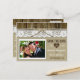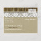Burlap and Lace Save the Date Wedding Postcards - vintage themed or country save the dates feature a wood background with a printed burlap and lace design on top with a twine decorative bow. The front also features a "Save the Date" heart design to customize with your own wedding date and your very own picture of choice. The back features the same printed design wrapped around. Find matching RSVP cards, invitations, wedding programs, and more below in this design to complete the whole wedding suite.