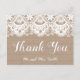 Burlap and Lace Wedding Thank You Postcards Rustic