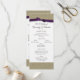The look of burlap with a dark purple bow wedding program to compliment invitations. Change text as needed.