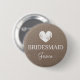 Personalized burlap texture bridesmaid buttons with little weathered heart and elegant font. Great for bachelorette party, bridal shower and beautiful country chic weddings. Classy round design. Fun and cute! Make your own for maid of honor, matron of honor, flower girl, mother of the bride etc.