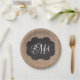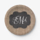 Burlap Chalkboard Look Triple Monogrammed Script Paper Plates