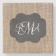 Burlap Chalkboard Look Triple Monogrammed Script Stone Coaster