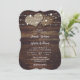 Burlap Hearts String Lights Rustic Wood Wedding Invitation