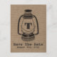 Burlap Inspired Oil Lantern Save The Date Postcard