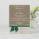 burlap lace emerald wedding invitation