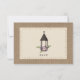 A wedding rsvp featuring an illustration of a lantern filled with a flower arrangement with a lavender color scheme. Personalize with your initial. Background is burlap and lace inspired. Look for matching wedding invitations and more at Jill's Paperie.