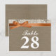 beautiful rustic burlap background, white lace and brown printed ribbon design wedding table number cards. Best for country, garden, or vintage style parties with white and chocolate brown color schemes.