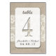 This rustic wedding table number card features a burlap and lace background with the ability to customize the card with your names and wedding date. Coordinately perfectly with our burlap and lace wedding collection.