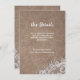Burlap Lace silver glitter rustic Wedding details Enclosure Card