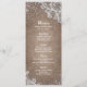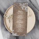 Elegant white vintage lace and sparkle silver glitter on rustic burlap background. great wedding menus for rustic wedding, barn wedding and country wedding.