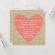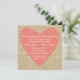 Plain white envelopes are included with paper invitations and will come to fit the invitation size you select. If you don’t need the envelopes, you may choose to not receive them by selecting the dropdown below "Envelopes" and choosing "None." If you’d like to have a design on your envelopes, you can browse all of these available envelopes to find the design that complements your Burlap Pink Heart Rustic Wedding Invitations.