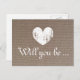 Burlap texture cards | Will you be my bridesmaid. Cute rustic heart design for country chic wedding.