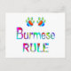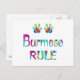 Burmese cat lovers will enjoy this colorful design with the cat paws and the words Burmese Rule.