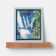 A digital painting of a waterfall found in California, Burney Falls. A brown and white butterfly is on a branch that is stretching across the scenic view. Image Copyright ©2023 Kimberly J Tilley.