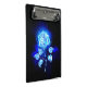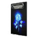 Blooming, abstract rose from blue flame on black background. Fire rose.