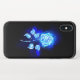 Blooming, abstract rose from blue flame on black background. Fire rose.