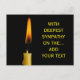 Burning wax candle against the black background. You can add your own text to make a custom product to express sympathy for any person, place or event. Postcard horizontal With deepest sympathy... Add your text or change the text. Do not forget to change the color and typeface of the font.