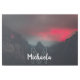 Landscape photograph of an unreal sunset taken at lake Lago di Fusine, Italy. Red color is a bit exaggerated but standing there in real life it really felt like this. In a short moment the sun broke through the fog and just as fast disappeared. With a personalizable monogram in the mountains.