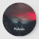 Burning clouds, fog and mountains monogram large clock