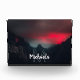 Landscape photograph of an unreal sunset taken at lake Lago di Fusine, Italy. Red color is a bit exaggerated but standing there in real life it really felt like this. In a short moment the sun broke through the fog and just as fast disappeared. With a personalizable monogram in the mountains.