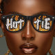 Cool black retro sunglasses with burning flames of fire and bold white graffiti text "Hottie". Great for cute women and girls.