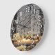 This seasonal Winter Solstice wall clock features a burning Yule log in an ancient snow covered forest.