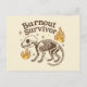 A vintage-style anatomical skeleton of a small animal (possum or raccoon) surrounded by flames and stars with "Burnout Survivor" text.