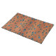 A chic and versatile style statement, the original artwork by ZoeSPEAK on this Cloth Placemat is a pattern looking like ribbed fabric in a burnt orange color, with thin ribs of red and spheres emerging through the fabric in shades of yellow orange and aqua blue. The shapes are smudged as if they are falling through the fabric.