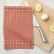 This warm design kitchen towel features cascading cream dots on a burnt orange background. It will work in either a modern or rustic home kitchen.