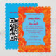 Burnt Orange Blue Floral QR Code Roses Wedding Invitation