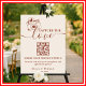 This innovative QR code wedding sign is designed for modern couples who want to easily collect all those precious guest-captured moments. The rich burnt orange hues evoke natural warmth, while the rustic design seamlessly complements your boho or fall wedding theme. By simply scanning the QR code, guests can directly upload their photos and videos to your chosen sharing platform (e.g., shared album, online gallery, wedding app), ensuring you don't miss a single magical shot.