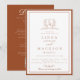 Burnt Orange botanical crest All in one wedding Invitation