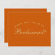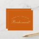 It is just golden text on burnt orange background. The word Bridesmaid on the front and the message on the back are written in an elegant calligraphic script, the arched text "[Name] will you be my" above the word Bridesmaid in small caps.