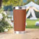 A burnt orange, brown colored background. Personalize and add your monogram initials and full name. White text.