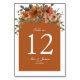 Burnt Orange Brown Floral Wedding Bridal Shower Table Number