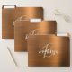 These elegant personalized file folders feature a monogram and first name in modern beige and white script on a trendy burnt orange brushed metal background.