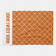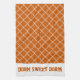 Our custom kitchen towel adorned with a white and burnt orange pattern and text in school type lettering. View our full line of products in our Zazzle store.