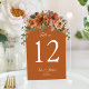 This exquisite acrylic table number features a stunning burnt orange, rust, copper floral design in an arch shape. Easily personalize each table number by clicking the "Edit Using Design Tool" button to re-arrange and format the text to your liking. Choose from two exquisite finishes: Clear or Frosted, and select between two stylish corner options: Rectangle or Arched.